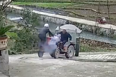 【頭の悪い事故】坂道で楽をしようとしたのか登り切れずクラッシュしながらバイクと一緒に落ちていったwww
