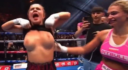 【動画あり】ボクサーのダニエラ・ヘムズリーが勝利を祝って胸を露出
