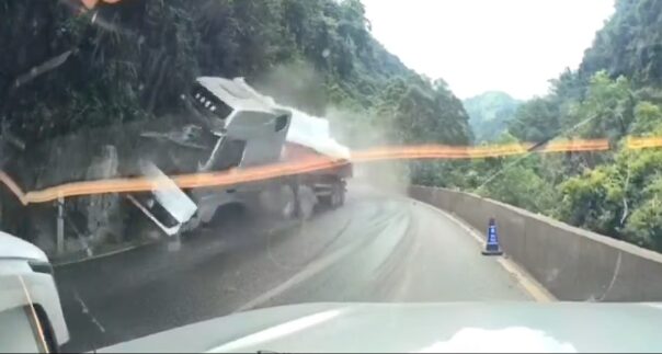 【一体何事?】前から大型トラックが全てをなぎ倒しながら猪突猛進してきて大惨事