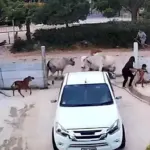 突然入り込んだ牛の猛攻・・・・!激闘の結果は・・・?