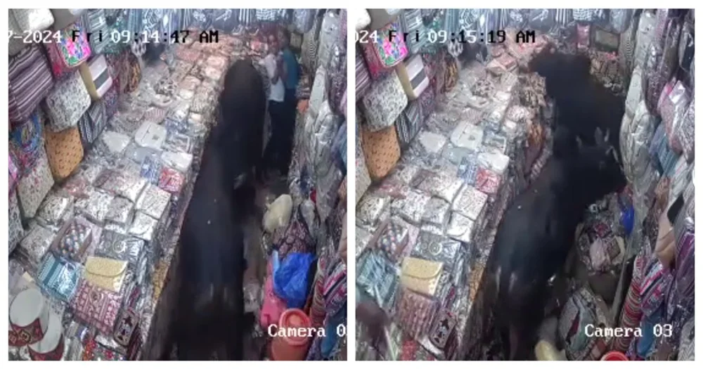 【怒りの大暴走!!!】牛がハンドバッグ店で大暴れした結果!!!!!!