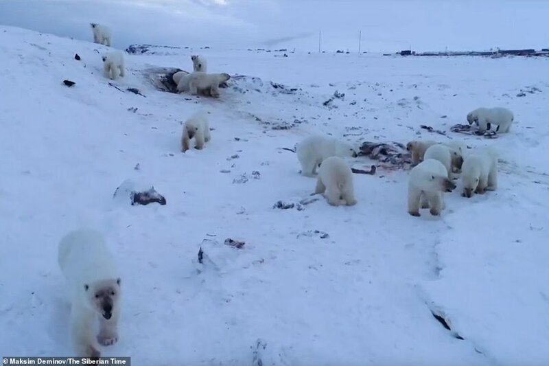 【恐怖】56頭の飢えたホッキョクグマがチュクチ半島の村を包囲した・・・!