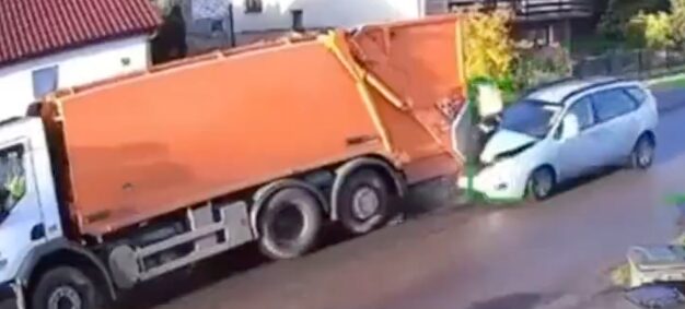 【朝から事故発生】ごみ収集途中に後ろから車が突っ込んできて車と車の間に挟まり大事故