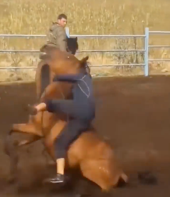 【乗馬失敗!?】少年が暴れ馬を押さえつけようとしたら大事故に