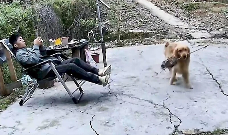 【危険】犬は庭でくつろいでいた飼い主にスズメバチの巣を持ってきました。