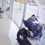 【海外の事故映像】電動スクーターに乗っていた男性が車と衝突してぶっ飛んだ