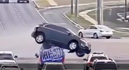 【海外の事故映像】電動スクーターに乗っていた男性が車と衝突してぶっ飛んだ