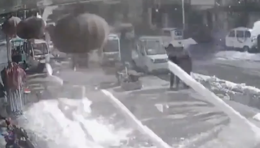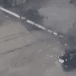 【海外の事故映像】電動スクーターに乗っていた男性が車と衝突してぶっ飛んだ