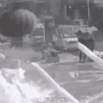 【海外の事故映像】電動スクーターに乗っていた男性が車と衝突してぶっ飛んだ