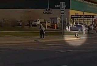 【海外の事故映像】電動スクーターに乗っていた男性が車と衝突してぶっ飛んだ