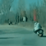 【海外の事故映像】電動スクーターに乗っていた男性が車と衝突してぶっ飛んだ