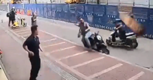 【海外の事故映像】電動スクーターに乗っていた男性が車と衝突してぶっ飛んだ