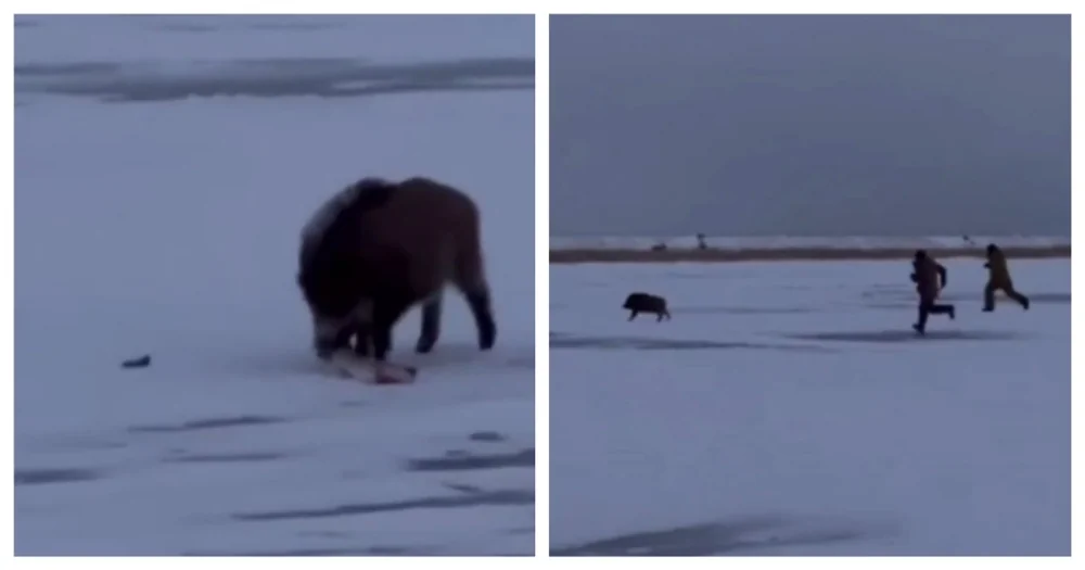 【衝撃】カザフスタンで冬の釣り愛好家たちはイノシシに襲われました・・・・