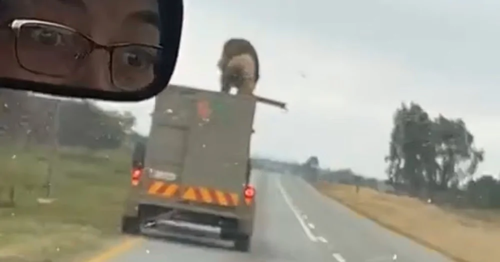 【恐怖】ライオンが高さ2.5mあるトレーラーの屋根に乗って逃げた!!