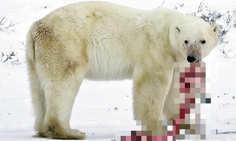 【モザイクなし画像あり】北極のホッキョクグマは互いを食い合っている・・・