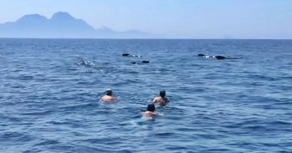 【危険行為】スリルを求める人は、ゴンドウクジラと一緒に泳ごうとするwww