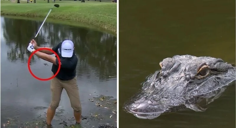 【超接近・・・!】間近でワニがゴルファーのスイングを監視していた・・・