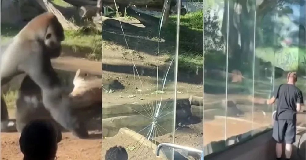 【圧倒的な破壊力】サンディエゴ動物園でゴリラがガラスの囲いを壊した。
