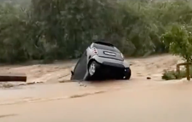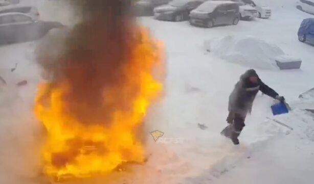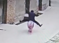 【海外の事故映像】電動スクーターに乗っていた男性が車と衝突してぶっ飛んだ