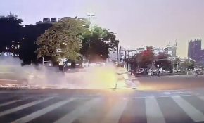 【炎上バイクの突進】交差点で大炎上したバイクが中央で止まり大爆発