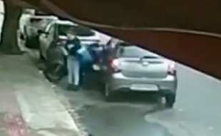 【海外の事故映像】電動スクーターに乗っていた男性が車と衝突してぶっ飛んだ