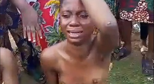 【動画あり】女性の現金泥棒が上半身裸にされ暴行される
