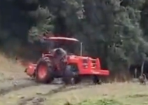 【操縦不可能!?】トラクターが坂道を下っている途中に操縦できなくなって坂の下に消えていったwww